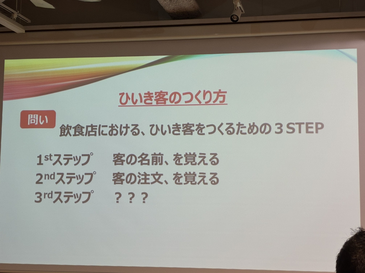 お題は「飲食店における、ひいき客をつくるための3STEP」です。