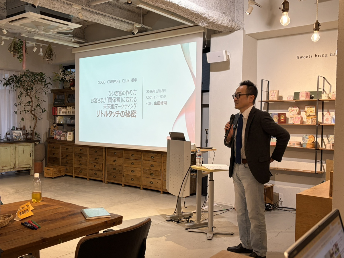 現在は、自ら立ち上げたコミュニティー=CSクレイジーバンドで、CSやESの研究、講演やコンサルティング活動を行われています。