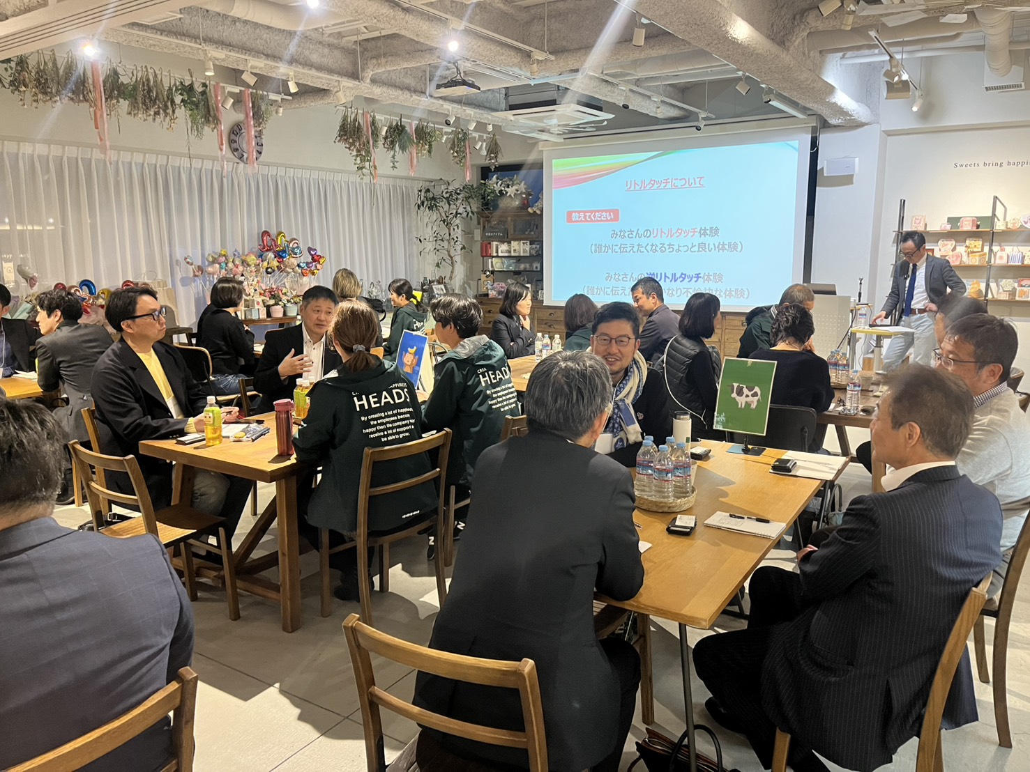 【「売り手によし」「買い手によし」「世間によし」「地球によし」「未来によし」五方よしの実践】 をテーマに、グループに分かれてワークショップ形式で話し合います。